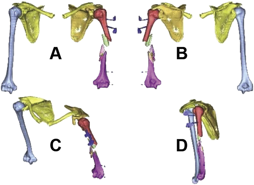 B.右肱骨的术前3D建模图形决定了假关节的形成和骨轴的变化。