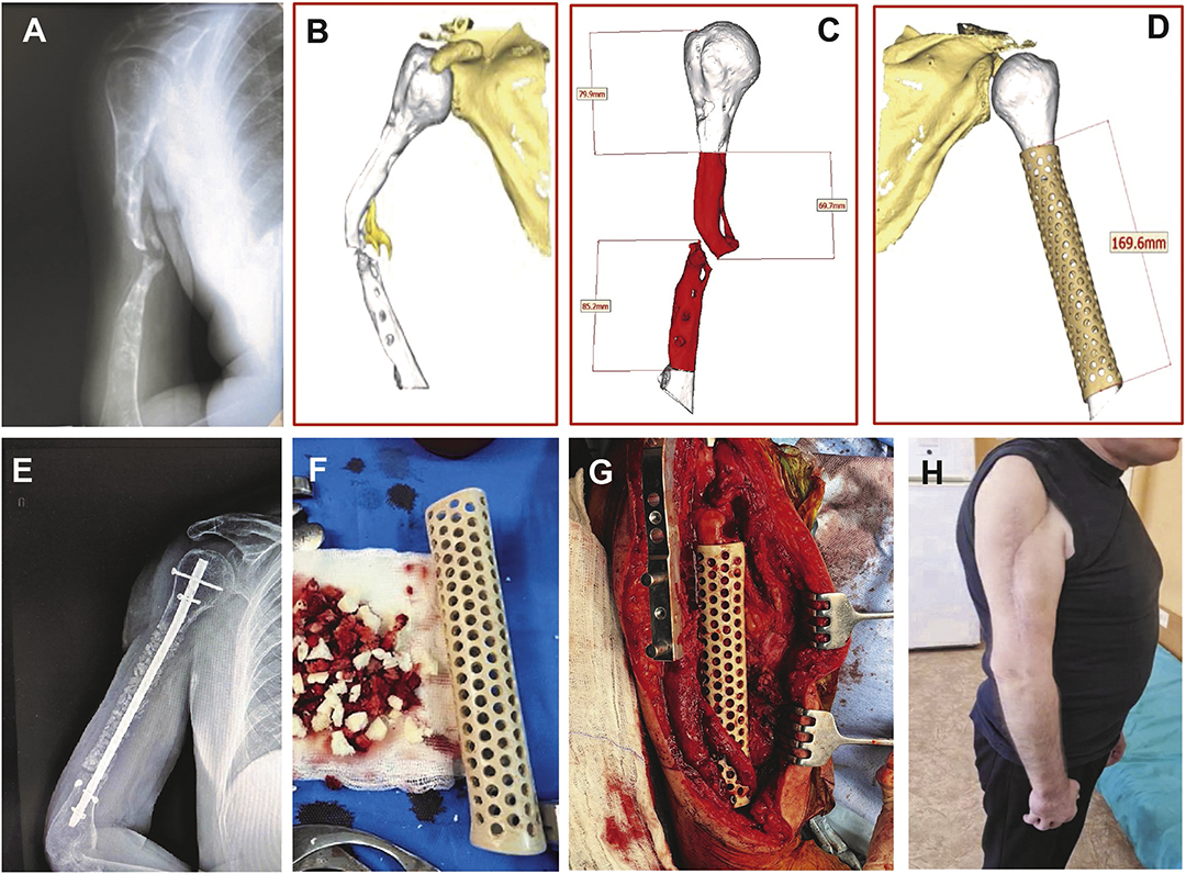图5:右肱骨严重骨折并接受3D打印PEEK植入物治疗伤员的照片