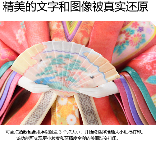 精确控制墨滴的位置,边缘无渗墨; 因此,细腻的纹理被真实地重现。